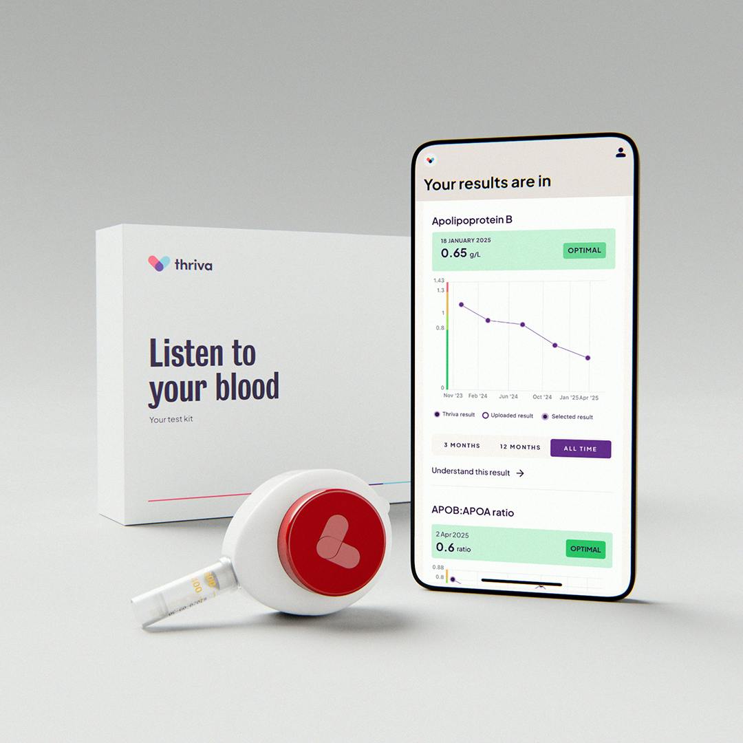 Personalised blood testing from home — no clinics, no needles. Each set of results is reviewed by a doctor, with clear guidance on where to focus. Track your progress in the app and see what's actually working.