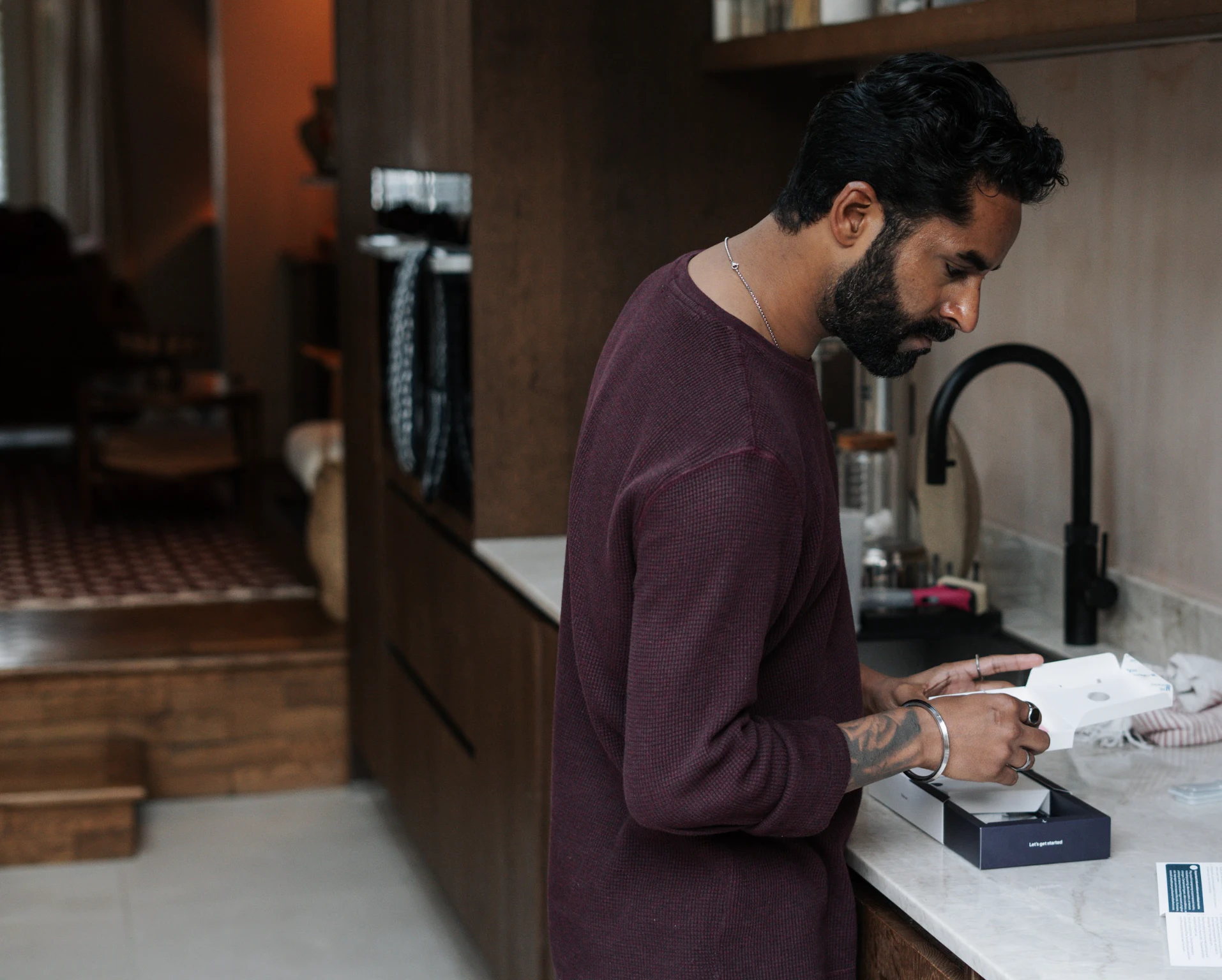 Our autodraw device collects a blood sample from your arm in minutes. Clinical-grade accuracy, validated against venous blood draws. Test while you make your morning coffee.